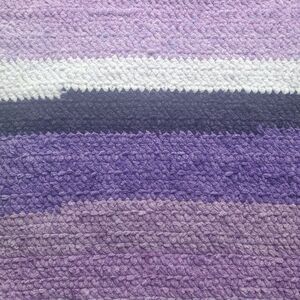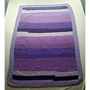 Beautiful handmade purple afghan blanket, measuring approximately 48" × 35". This cozy crochet-style throw features a gradient of purples—from soft lilac to deep violet—adding warmth, texture, and charm to any living room, bedroom, or reading nook.