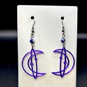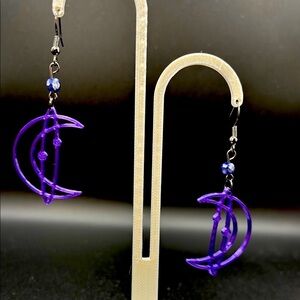 Elegant handmade earrings featuring a unique purple moon design. Perfect for adding a touch of color to any outfit.