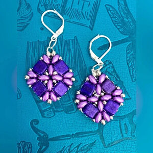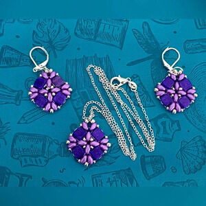 Handmade Purple Silver Czech Glass Bead Necklace & Earrings Set