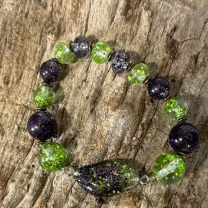 Handmade Purple and Green Resin and Glitter Bracelet and Dangle Earring set