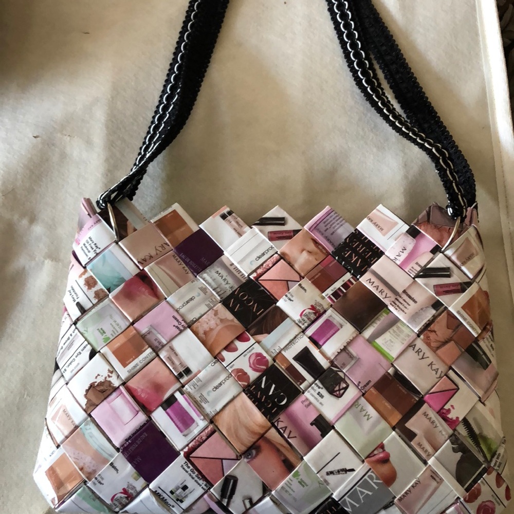 Handmade purse out of Recycled Mary Kay Catalogs... I did not make this... I purchased this when I was a consultant just never used it... non smoking... pet friendly home... question please ask...