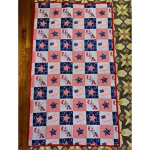 Super cute patriot hand quilted quilt in excellent condition no rips, tears, or stains! 4th pic shows every hand stitch that was sewn