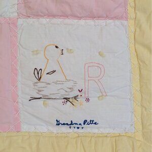 Handmade Quilt Embroidered Alphabet Birds Knots Yellow Pink 45x58 Baby Blanket