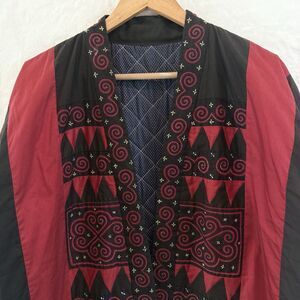 Handmade Quilt Jacket Red Black Patchwork Boho Festival Folk Art Large