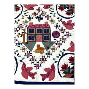Handmade Quilt Country Birds Golden Retrievers House Design & Dog 54" x 53.5"