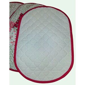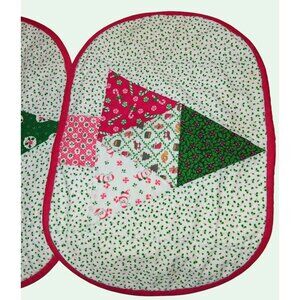 This set of 4 vintage quilted placemats features festive Christmas patchwork patterns in red and green tones, ideal for enhancing holiday table decor.