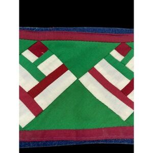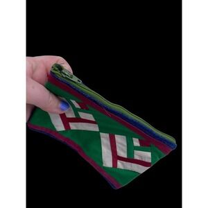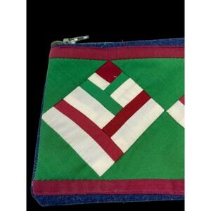 Handmade Vintage Quilted Zip Top Coin Purse Pouch 6.5" x 4.5" Green White Red w/ Jean Denim Back