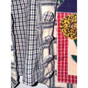 Handmade Quilted Cotton Vest With Appliqué House & Flowers Design Button Closure