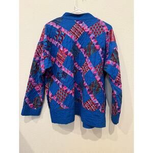Handmade Quilted Jacket with Pockets Blue Pink L/XL Grannycore Cottagecore