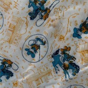 Underside is cotton fabric with rodeo/cowboy/horses all over print