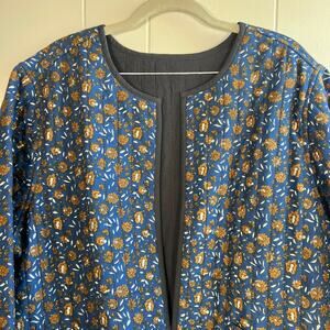 Handmade Quilted Navy Floral Open Jacket Granny Jacket