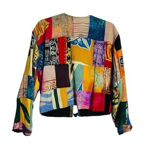 Handmade Quilted Patchwork Jacket Womens S/M Colorful Boho Batik Art to Wear