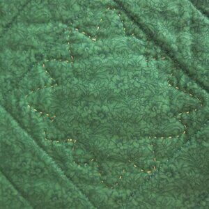 Handmade Quilted Red Green Floral Poinsettia Gold Edge Geometric Table Runner