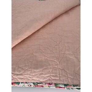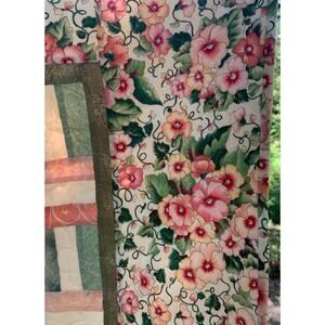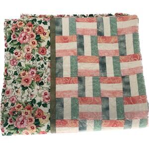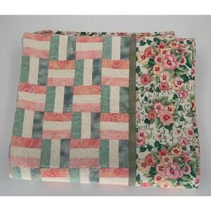 Handmade Quilted Throw Blanket Cotton Peach Color Floral Rail Fence Weave Design