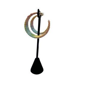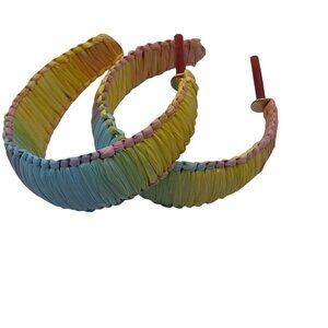 Handmade Raffia Hoop Earrings Rainbow Wrap Korean Summer Beach Party Jewelry