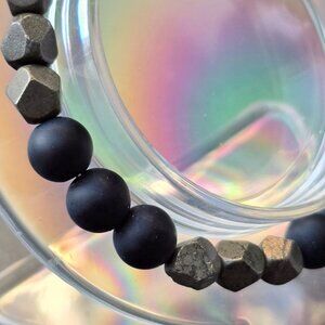 Handmade ✦ Raw Pyrite & Black Agate Bracelet ✦ 8mm Gemstone Beads Stretch Fit