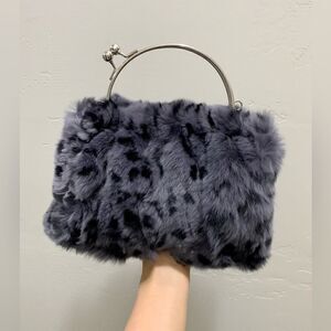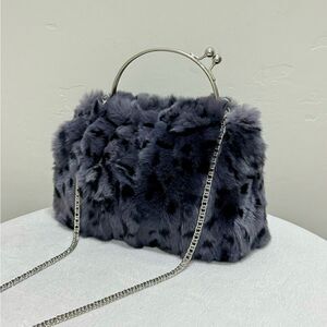 Handmade Real Rex Rabbit Fur Kiss-lock Top Handle Bag/Crossbody