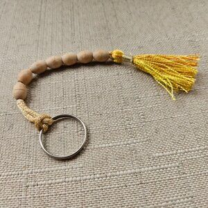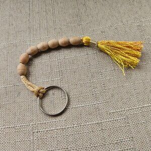 Handmade Real Wood Beads Keys Holder Keychain Yellow Tassel Key chain
