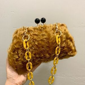 Handmade Real Curly Shearling Kisslock Clutch/Shoulder Bag/Crossbody & 2 Chains
