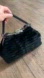 One of a kind! Chic handbag design, gorgeous & high quality. Large size. Handmade from genuine premium embossed Rex rabbit fur, chic embossed horizontal lines with custom metal frame. Includes 3 strap styles, use in multiple ways. Hand carry, wear as a wristlet, shoulder bag or crossbody.