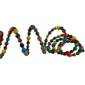 Handmade Recycled Paper Bead Coil Wrap Bracelet Rainbow Multicolor Boho in good preowned condition.