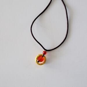 Handmade Red Bead Pendant Necklace Gold Accent Dark Brown Cord Adjustable Style