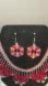 Handmade Red & Clear Beaded Necklace Set With Earrings and Beaded Toggle lock