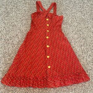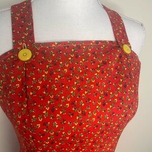 Handmade Red Floral Fit & Flare Sundress with Crisscross Back. XXS Y2K