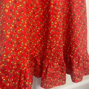 This red floral dress is perfect for any occasion. Its vibrant color and stylish design make it a must-have in your wardrobe. Two front patch pockets & ruffle hem. Great for upcoming Spring/Summer events or vacation.
