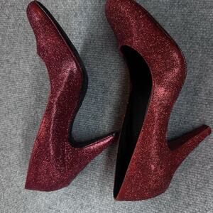 Handmade ruby slipper heels inspired by The Wizard of Oz. Created using Dexter brand heels as the base, then coated in red glitter for a sparkly, eye-catching look. Perfect for Halloween costumes, cosplay, theater, or themed displays.