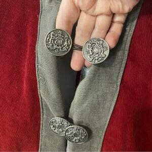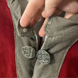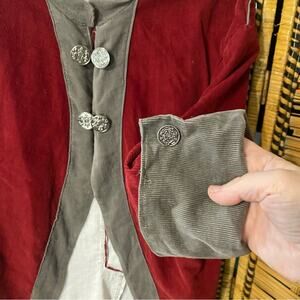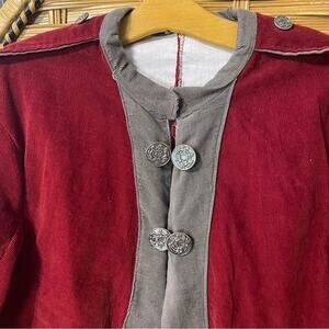 This elegant cape combines a vibrant red exterior with a subtle gray lining, offering a sophisticated look. Its open front design and soft knit fabric make it a versatile piece for any occasion. Perfect for layering, this cape adds a touch of class to any outfit. Handmade, costume, war reenactment, cosplay, redcoats, corduroy