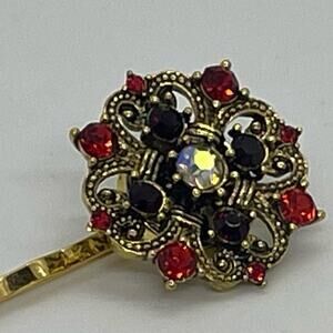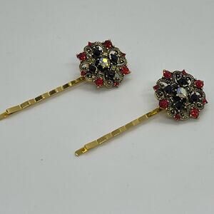 Handmade Red Iridescent Rhinestone Gold Set Hair Clips HoCo Fairy Jewelry NWT