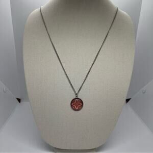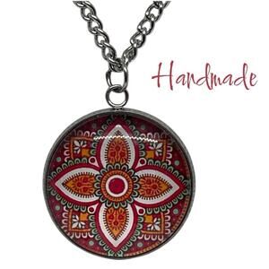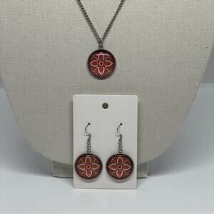 Handmade Red Orange Teal Silver Mandala Pendant Necklace & Earrings Set NWT OS