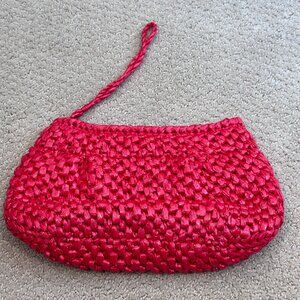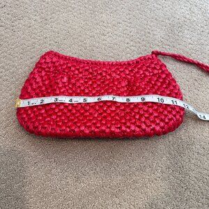 Handmade Red Plastic Raffia Woven Clutch Wristlet Bag Philippines Retro Tourist