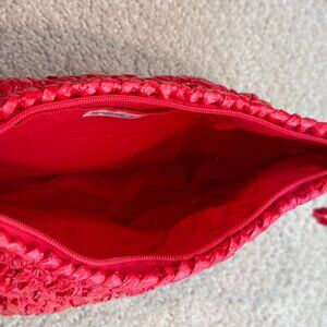 Red Plastic Raffia Woven Clutch Wristlet Bag Handmade in Philippines Tourist Tropical Resort Vacation Retro
