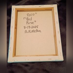 Handmade Red Rose Acrylic Painting On Stretched Canvas Wall Decor 8x10"