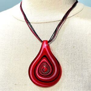 This Handmade Red Teardrop Glass Pendant Necklace is in excellent condition.