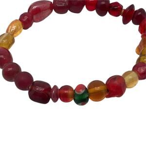 Red and yellow beads with one green bead detail. Elastic, stretchy. Total length unstretched 7.5".