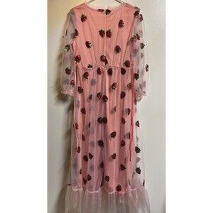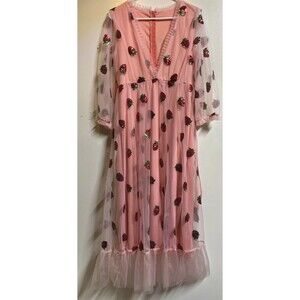 Handmade Regency Era Bridgerton Dress Large Strawberry Sequins Lace Maxi Pink