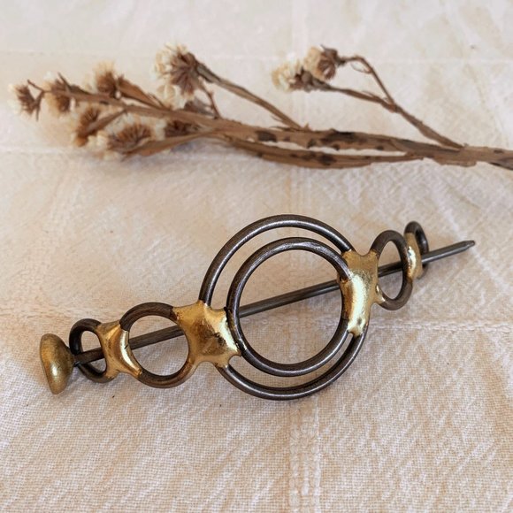 Gorgeous hand forged of iron steel shaped to the unique pin.Could be used to wrap up your hair or scarf/shawl together.