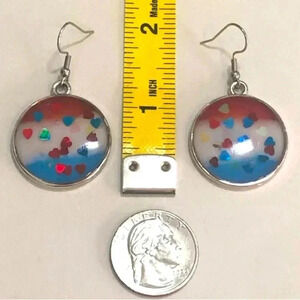 Handmade Resin Hearts and Stripes Independence Day 4th of July Earrings New