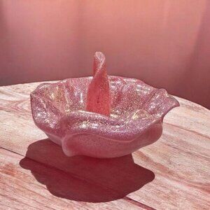 Style Tags: resin ring dish ✦ handmade jewelry holder ✦ glittery vanity dish ✦ witchy altar accessory ✦ rose pink resin ✦ crystal holder ✦ ritual décor