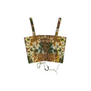 Handmade Reversible Earth Tone Tie Dye Lace Up Suede Corset Crop Top