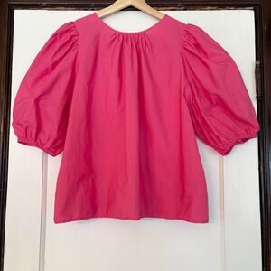 Handmade Reversible Fuchsia Pink Cotton Tie Puff Sleeve Top— Size Large
