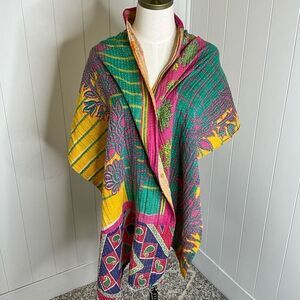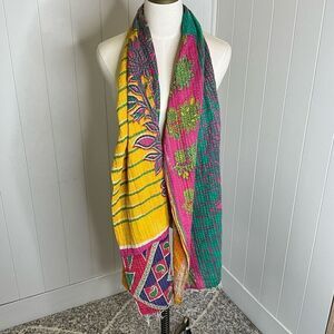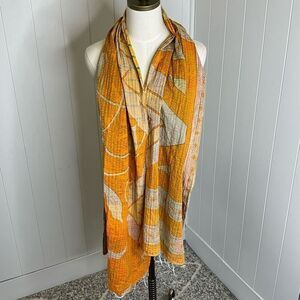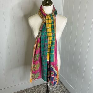 Handmade Reversible Scarf From Recycled Saris Pink Yellow Orange Mixed Media