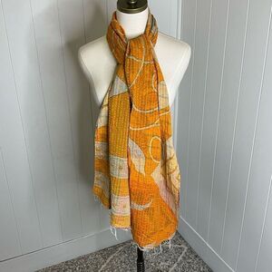 Handmade Reversible Scarf Made From Recycled Saris Red Orange Tan Mixed Media