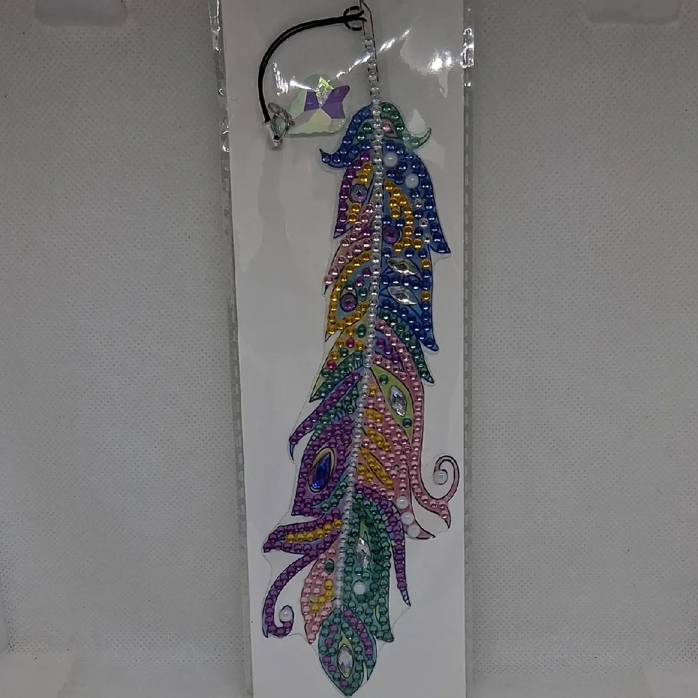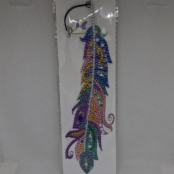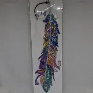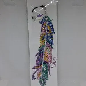 handmade multicolored rhinestone feather bookmark