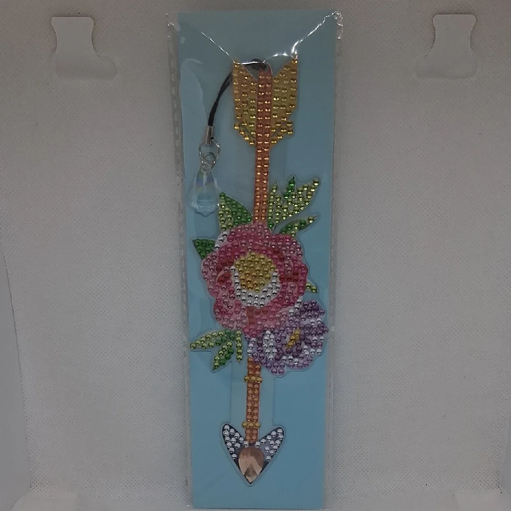 handmade multicolored rhinestone floral arrow bookmark