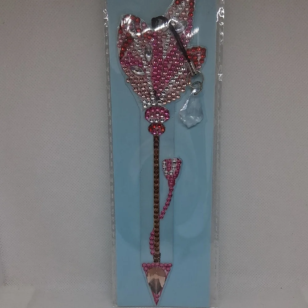 handmade rhinestone pink and red floral arrow bookmark