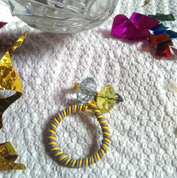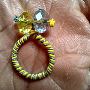 Grey and yellow handmade design wire ring. Fits most female ring finger.